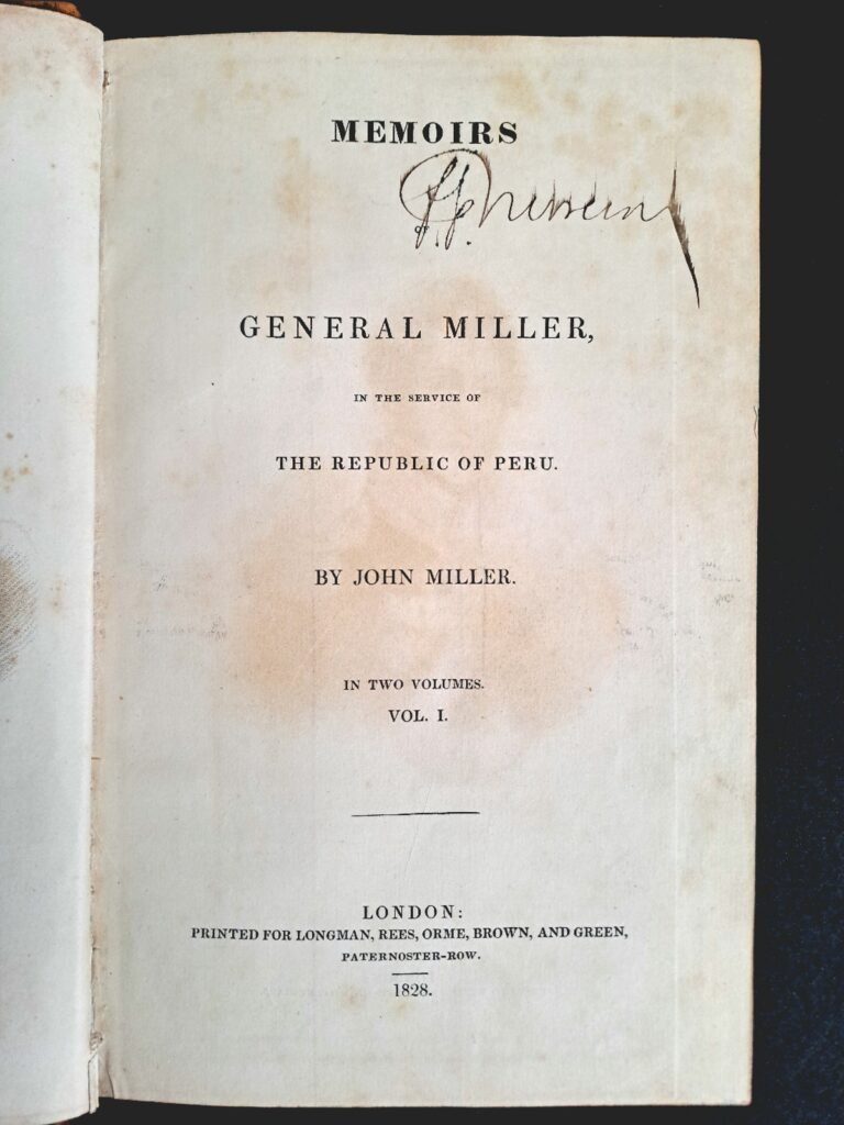 The Memoirs of General Miller, written by his brother John, are an important historical source that offer a description of the battles for South American independence very different from those of Lord Cochrane.